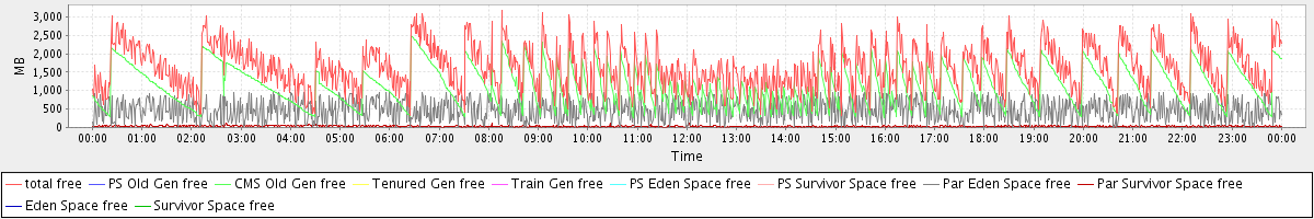 avg(total free) = 1628.75 avg(PS Old Gen free) = 0.00 avg(CMS Old Gen free) = 1121.37 avg(Tenured Gen free) = 0.00 avg(Train Gen free) = 0.00 avg(PS Eden Space free) = 0.00 avg(PS Survivor Space free) = 0.00 avg(Par Eden Space free) = 475.07 avg(Par Survivor Space free) = 32.31 avg(Eden Space free) = 0.00 avg(Survivor Space free) = 0.00