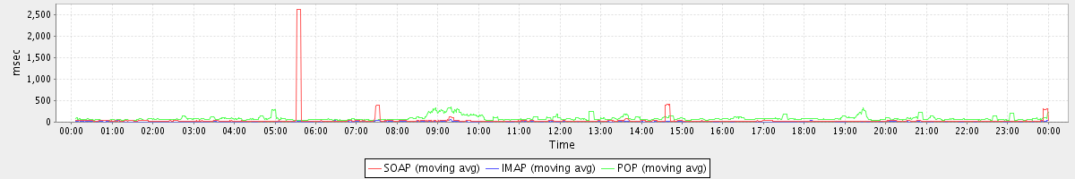 avg(SOAP) = 45.55 avg(IMAP) = 12.38 avg(POP) = 87.27