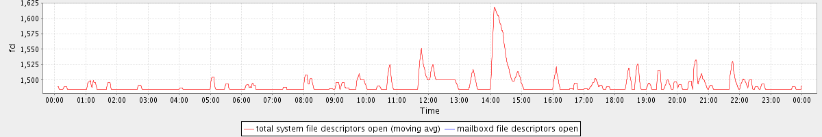 avg(total system file descriptors open) = 1492.35 avg(mailboxd file descriptors open) = 0.00