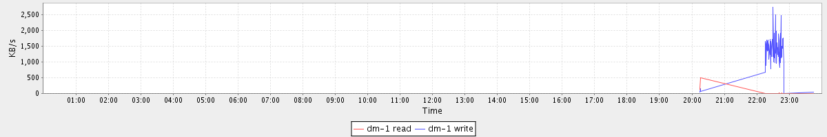 avg(dm-1 read) = 0.08 avg(dm-1 write) = 8.62