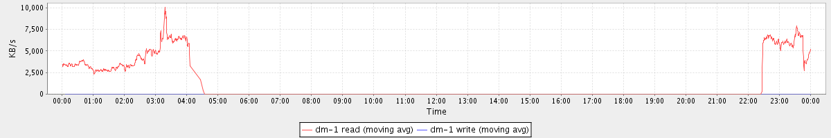 avg(dm-1 read) = 53.40 avg(dm-1 write) = 0.17