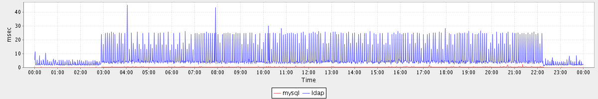 avg(mysql) = 0.20 avg(ldap) = 6.69