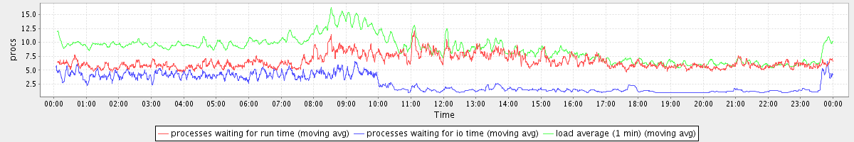 avg(processes waiting for run time) = 6.59 avg(processes waiting for io time) = 2.12 avg(load average (1 min)) = 8.84