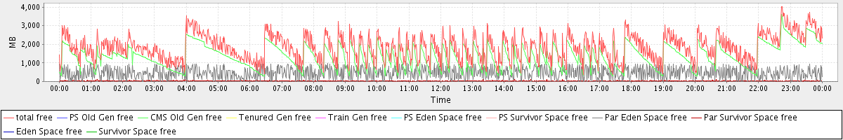 avg(total free) = 1841.20 avg(PS Old Gen free) = 0.00 avg(CMS Old Gen free) = 1344.56 avg(Tenured Gen free) = 0.00 avg(Train Gen free) = 0.00 avg(PS Eden Space free) = 0.00 avg(PS Survivor Space free) = 0.00 avg(Par Eden Space free) = 467.05 avg(Par Survivor Space free) = 29.60 avg(Eden Space free) = 0.00 avg(Survivor Space free) = 0.00