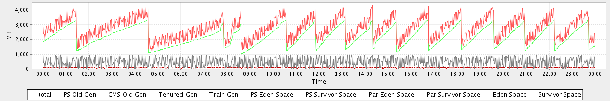 avg(total) = 2760.84 avg(PS Old Gen) = 0.00 avg(CMS Old Gen) = 2192.33 avg(Tenured Gen) = 0.00 avg(Train Gen) = 0.00 avg(PS Eden Space) = 0.00 avg(PS Survivor Space) = 0.00 avg(Par Eden Space) = 484.48 avg(Par Survivor Space) = 84.03 avg(Eden Space) = 0.00 avg(Survivor Space) = 0.00