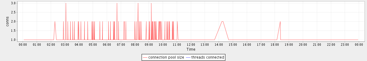 avg(connection pool size) = 0.46 avg(threads connected) = 0.00