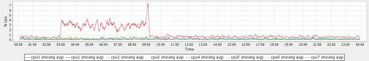 avg(cpu0) = 0.08 avg(cpu1) = 0.01 avg(cpu2) = 0.07 avg(cpu3) = 0.01 avg(cpu4) = 0.00 avg(cpu5) = 0.00 avg(cpu6) = 0.03 avg(cpu7) = 0.00