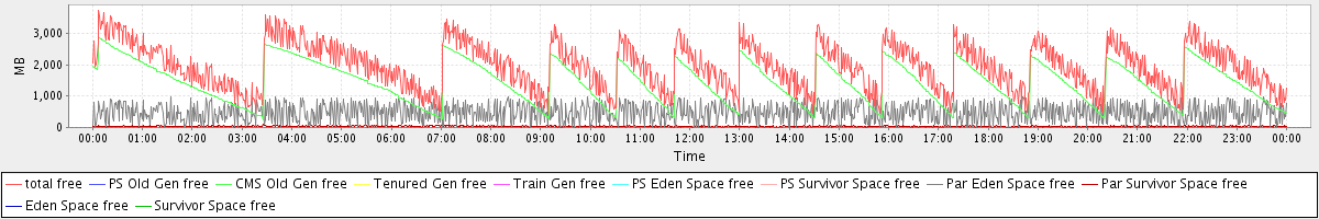 avg(total free) = 1955.05 avg(PS Old Gen free) = 0.00 avg(CMS Old Gen free) = 1439.94 avg(Tenured Gen free) = 0.00 avg(Train Gen free) = 0.00 avg(PS Eden Space free) = 0.00 avg(PS Survivor Space free) = 0.00 avg(Par Eden Space free) = 477.71 avg(Par Survivor Space free) = 37.40 avg(Eden Space free) = 0.00 avg(Survivor Space free) = 0.00
