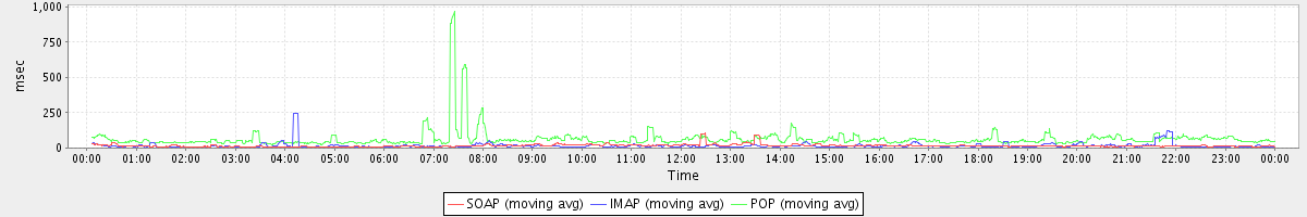 Host zm08.stanford.edu: Mailboxd: Response Time by Client Protocol