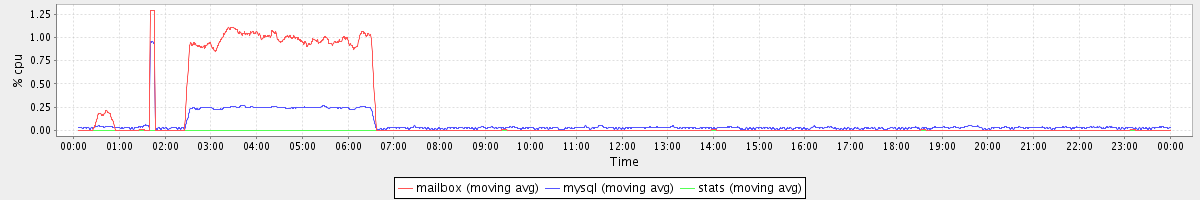 avg(mailbox) = 0.18 avg(mysql) = 0.07 avg(stats) = 0.00