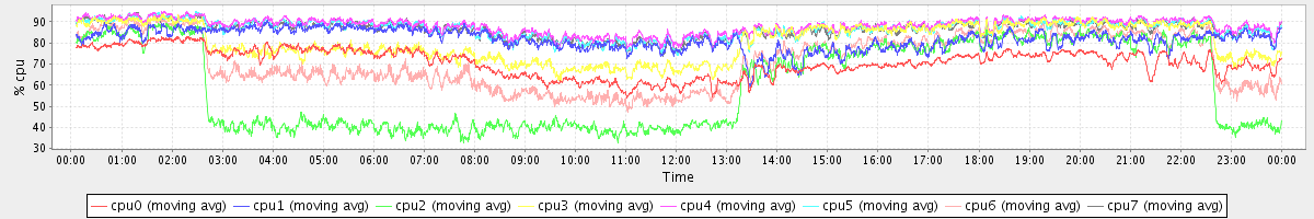 avg(cpu0) = 70.91 avg(cpu1) = 81.75 avg(cpu2) = 60.08 avg(cpu3) = 80.48 avg(cpu4) = 88.18 avg(cpu5) = 86.89 avg(cpu6) = 71.35 avg(cpu7) = 86.40