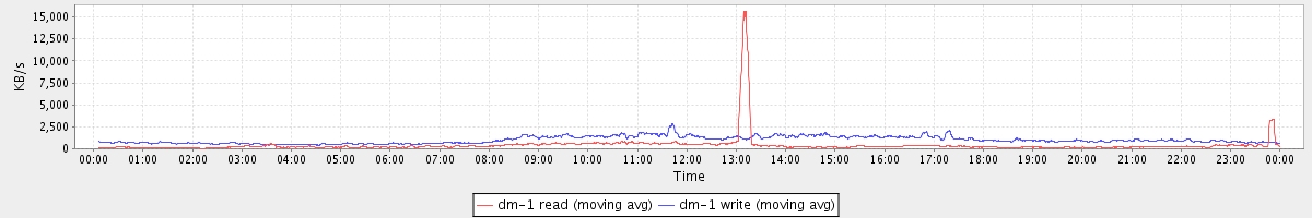 avg(dm-1 read) = 413.44 avg(dm-1 write) = 998.42