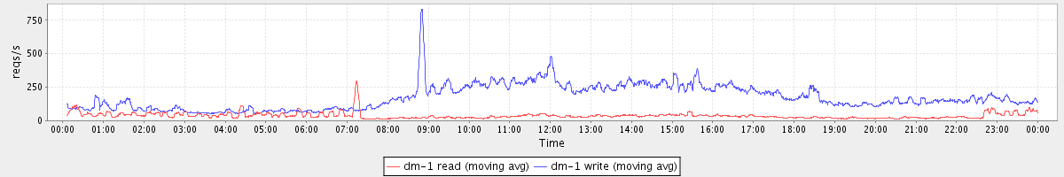 avg(dm-1 read) = 352.26 avg(dm-1 write) = 1007.29
