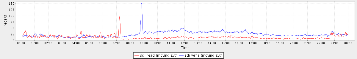 avg(sda2 read) = 0.40 avg(sda2 write) = 7.34