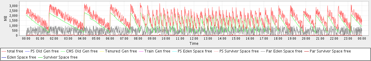 avg(total free) = 1745.81 avg(PS Old Gen free) = 0.00 avg(CMS Old Gen free) = 1229.76 avg(Tenured Gen free) = 0.00 avg(Train Gen free) = 0.00 avg(PS Eden Space free) = 0.00 avg(PS Survivor Space free) = 0.00 avg(Par Eden Space free) = 485.38 avg(Par Survivor Space free) = 30.67 avg(Eden Space free) = 0.00 avg(Survivor Space free) = 0.00