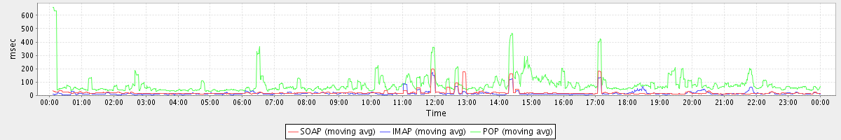Host zm04.stanford.edu: Mailboxd: Response Time by Client Protocol