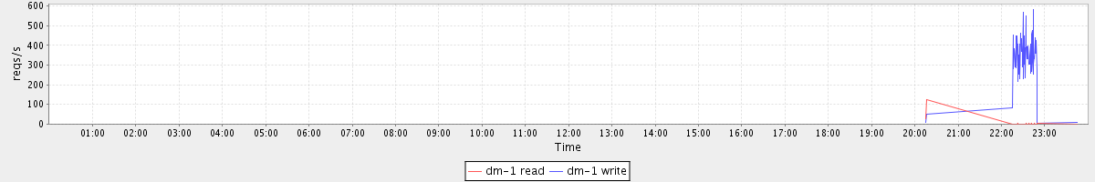 avg(dm-1 read) = 0.08 avg(dm-1 write) = 8.49