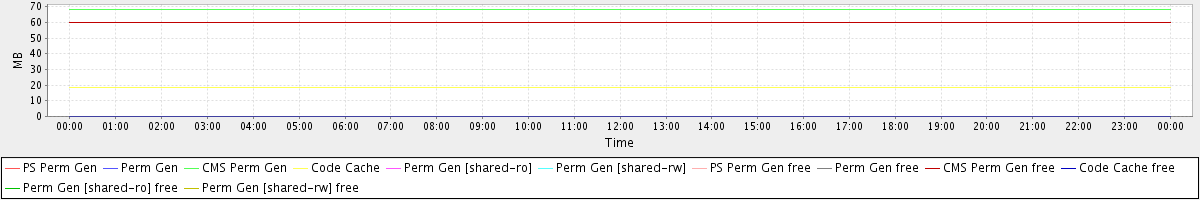 avg(PS Perm Gen) = 0.00 avg(Perm Gen) = 0.00 avg(CMS Perm Gen) = 68.33 avg(Code Cache) = 18.55 avg(Perm Gen [shared-ro]) = 0.00 avg(Perm Gen [shared-rw]) = 0.00 avg(PS Perm Gen free) = 0.00 avg(Perm Gen free) = 0.00 avg(CMS Perm Gen free) = 59.67 avg(Code Cache free) = 0.16 avg(Perm Gen [shared-ro] free) = 0.00 avg(Perm Gen [shared-rw] free) = 0.00
