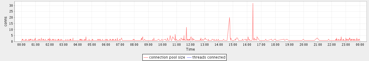 avg(connection pool size) = 0.78 avg(threads connected) = 0.00