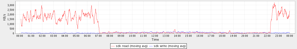 avg(sda2 read) = 0.48 avg(sda2 write) = 7.39