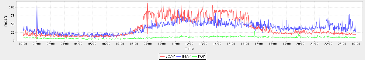 Host zm06.stanford.edu: Mailboxd: Request Rate by Client Protocol