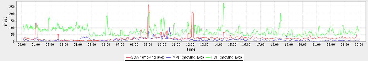 avg(SOAP) = 26.30 avg(IMAP) = 14.11 avg(POP) = 75.56
