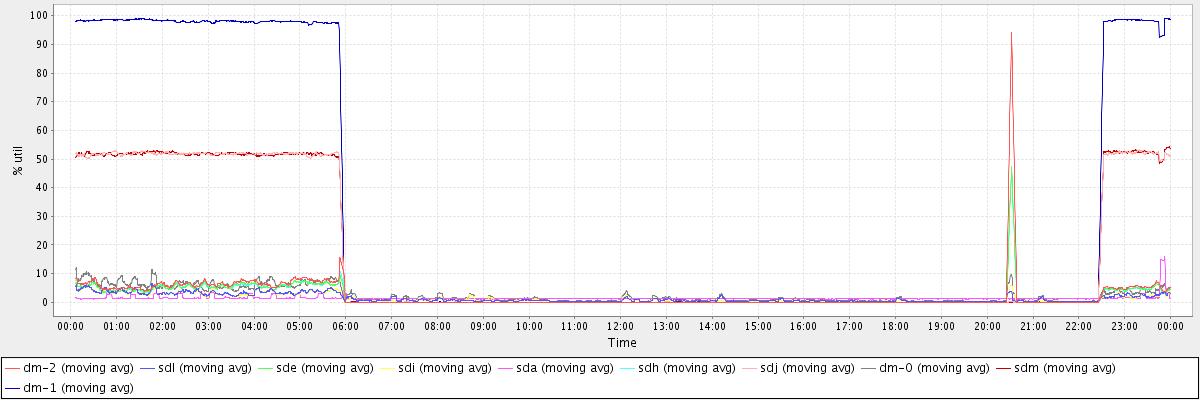 avg(dm-2) = 2.41 avg(sdl) = 1.40 avg(sde) = 1.90 avg(sdi) = 1.36 avg(sda) = 1.44 avg(sdh) = 1.90 avg(sdj) = 16.06 avg(dm-0) = 2.57 avg(sdm) = 16.08 avg(dm-1) = 30.39
