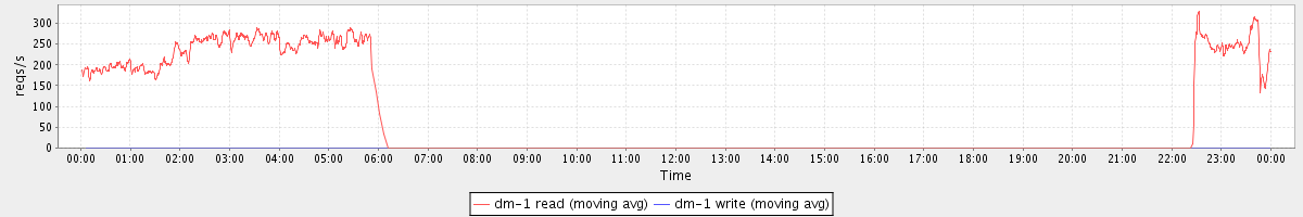 avg(dm-1 read) = 74.05 avg(dm-1 write) = 0.16