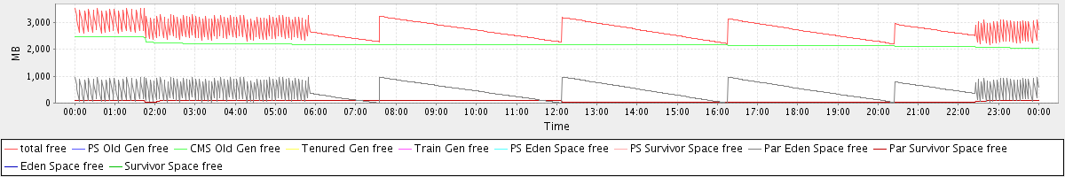avg(total free) = 2719.79 avg(PS Old Gen free) = 0.00 avg(CMS Old Gen free) = 2179.54 avg(Tenured Gen free) = 0.00 avg(Train Gen free) = 0.00 avg(PS Eden Space free) = 0.00 avg(PS Survivor Space free) = 0.00 avg(Par Eden Space free) = 472.21 avg(Par Survivor Space free) = 68.04 avg(Eden Space free) = 0.00 avg(Survivor Space free) = 0.00