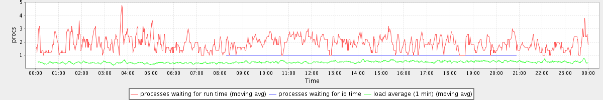 avg(processes waiting for run time) = 0.67 avg(processes waiting for io time) = 0.00 avg(load average (1 min)) = 0.48