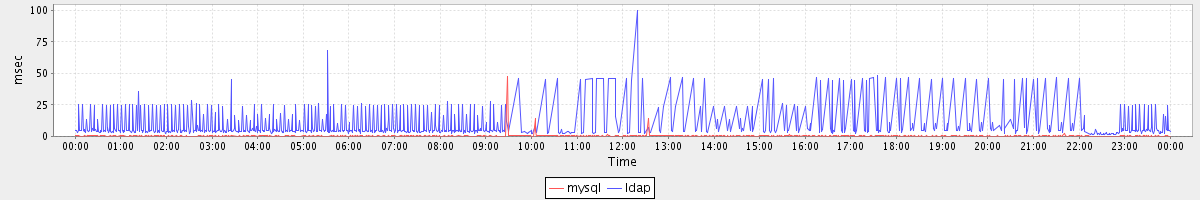 avg(mysql) = 0.32 avg(ldap) = 6.34
