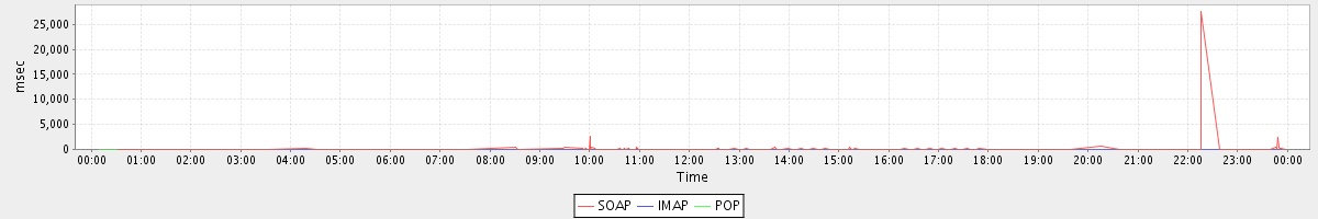 Host zm01-int.stanford.edu: Mailboxd: Response Time by Client Protocol