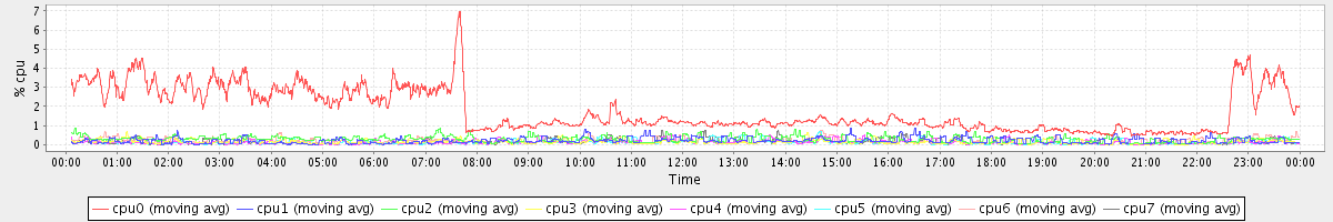 avg(cpu0) = 1.78 avg(cpu1) = 0.22 avg(cpu2) = 0.29 avg(cpu3) = 0.15 avg(cpu4) = 0.13 avg(cpu5) = 0.12 avg(cpu6) = 0.20 avg(cpu7) = 0.13