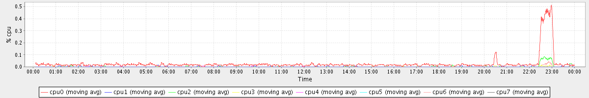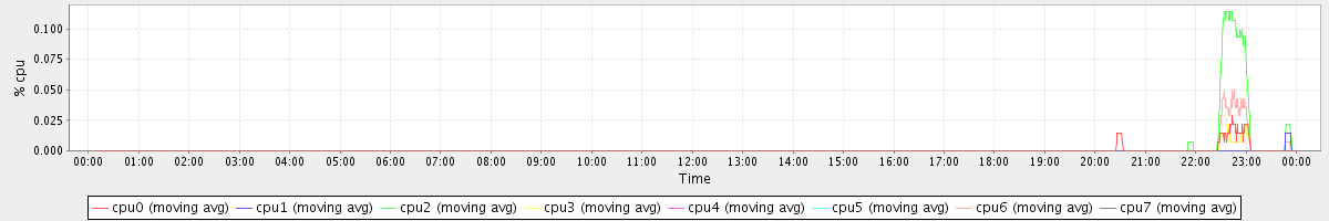 avg(cpu0) = 0.14 avg(cpu1) = 0.05 avg(cpu2) = 1.25 avg(cpu3) = 0.35 avg(cpu4) = 0.36 avg(cpu5) = 0.04 avg(cpu6) = 0.46 avg(cpu7) = 0.06