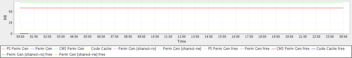 avg(PS Perm Gen) = 0.00 avg(Perm Gen) = 0.00 avg(CMS Perm Gen) = 70.32 avg(Code Cache) = 9.35 avg(Perm Gen [shared-ro]) = 0.00 avg(Perm Gen [shared-rw]) = 0.00 avg(PS Perm Gen free) = 0.00 avg(Perm Gen free) = 0.00 avg(CMS Perm Gen free) = 58.68 avg(Code Cache free) = 0.15 avg(Perm Gen [shared-ro] free) = 0.00 avg(Perm Gen [shared-rw] free) = 0.00