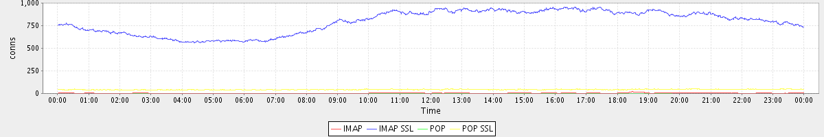 avg(IMAP) = 3.63 avg(IMAP SSL) = 789.58 avg(POP) = 0.05 avg(POP SSL) = 43.57
