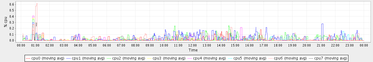 avg(cpu0) = 0.01 avg(cpu1) = 0.03 avg(cpu2) = 0.02 avg(cpu3) = 0.01 avg(cpu4) = 0.01 avg(cpu5) = 0.01 avg(cpu6) = 0.02 avg(cpu7) = 0.01