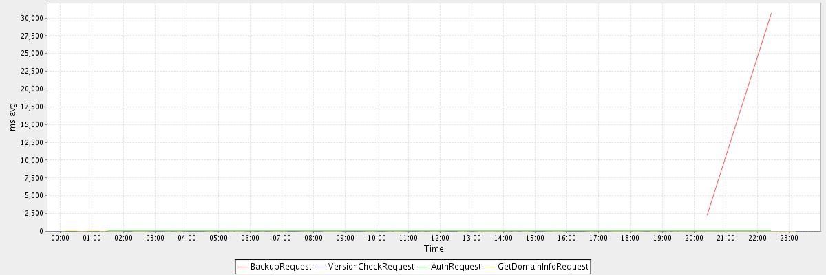 avg(BackupRequest) = 16438.00 avg(VersionCheckRequest) = 2484.00 avg(AuthRequest) = 52.25 avg(GetDomainInfoRequest) = 6.29