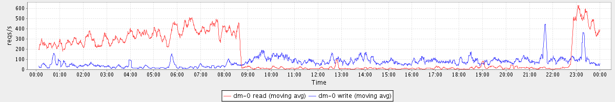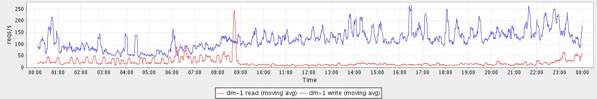avg(dm-0 read) = 2600.21 avg(dm-0 write) = 290.37