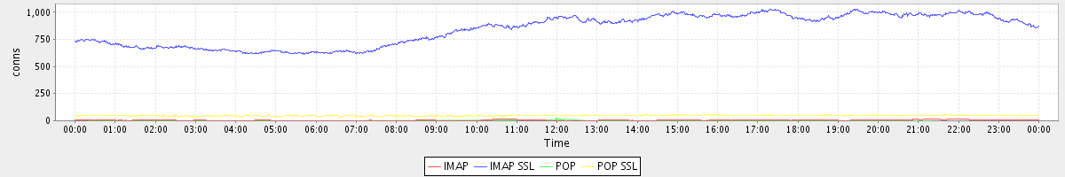 avg(IMAP) = 4.81 avg(IMAP SSL) = 841.07 avg(POP) = 0.11 avg(POP SSL) = 47.20