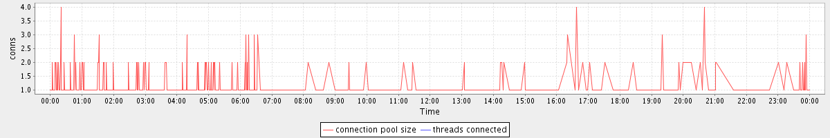 avg(connection pool size) = 0.49 avg(threads connected) = 0.00