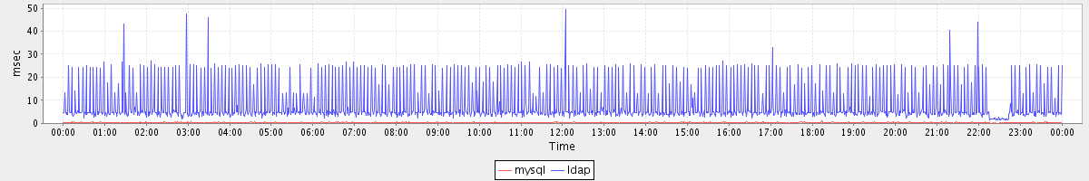 avg(mysql) = 0.21 avg(ldap) = 8.00
