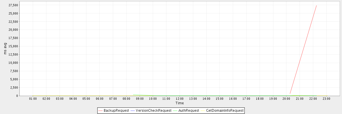 avg(BackupRequest) = 14029.00 avg(VersionCheckRequest) = 392.00 avg(AuthRequest) = 152.40 avg(GetDomainInfoRequest) = 48.96