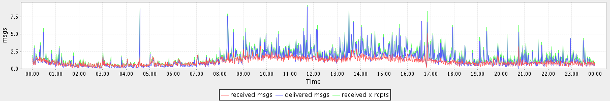 avg(received msgs) = 1.08 avg(delivered msgs) = 1.43 avg(received x rcpts) = 1.70