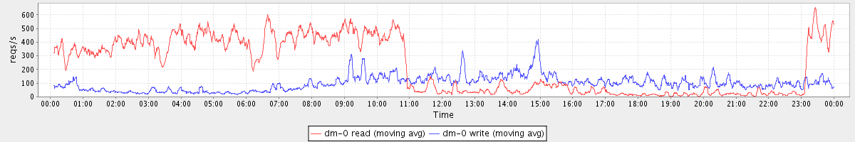 avg(dm-0 read) = 223.56 avg(dm-0 write) = 98.96