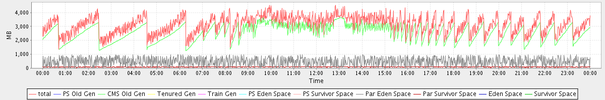 avg(total) = 3131.94 avg(PS Old Gen) = 0.00 avg(CMS Old Gen) = 2564.68 avg(Tenured Gen) = 0.00 avg(Train Gen) = 0.00 avg(PS Eden Space) = 0.00 avg(PS Survivor Space) = 0.00 avg(Par Eden Space) = 476.23 avg(Par Survivor Space) = 91.03 avg(Eden Space) = 0.00 avg(Survivor Space) = 0.00