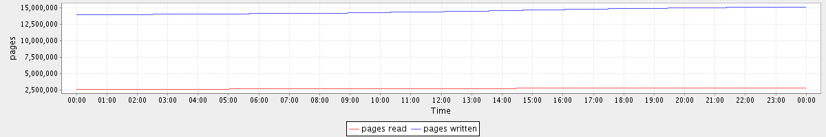 avg(pages read) = 2697240.05 avg(pages written) = 14498061.36