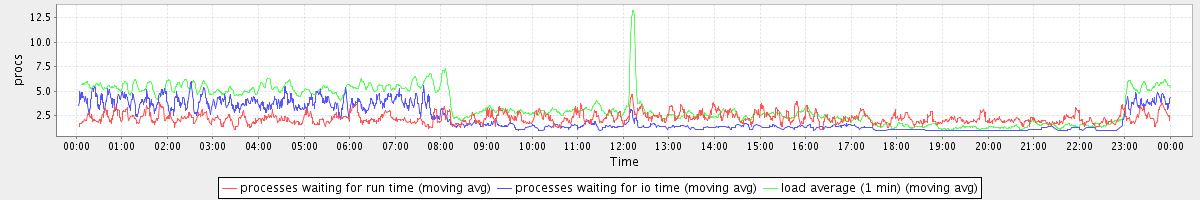 avg(processes waiting for run time) = 1.55 avg(processes waiting for io time) = 1.69 avg(load average (1 min)) = 3.50