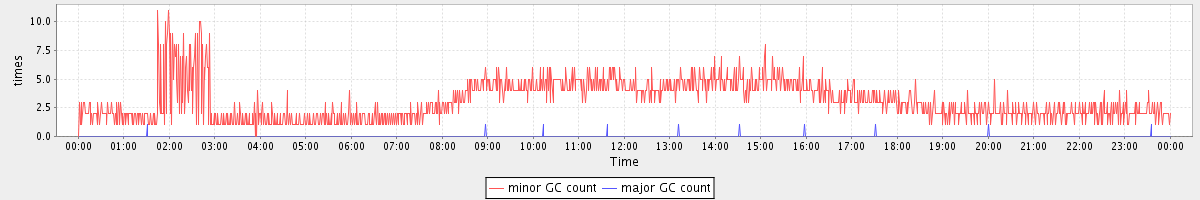 avg(minor GC count) = 3.07 avg(major GC count) = 0.01