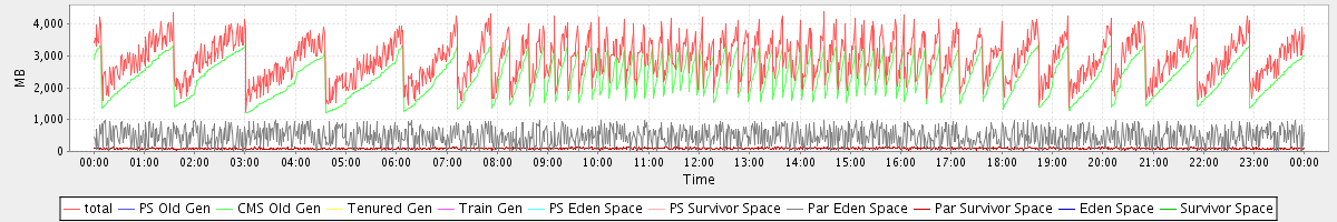 avg(total) = 2903.94 avg(PS Old Gen) = 0.00 avg(CMS Old Gen) = 2332.98 avg(Tenured Gen) = 0.00 avg(Train Gen) = 0.00 avg(PS Eden Space) = 0.00 avg(PS Survivor Space) = 0.00 avg(Par Eden Space) = 478.36 avg(Par Survivor Space) = 92.60 avg(Eden Space) = 0.00 avg(Survivor Space) = 0.00
